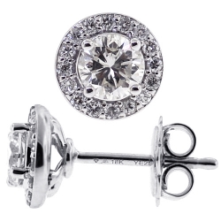 18K White Gold 1.08 ct Diamond Martini Halo Stud Earrings