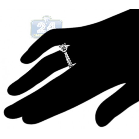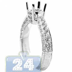 Make a beautiful beginning to your new life together with this 18k white gold engagement jewelry piece! Delicate yet royal looking ring is set with 1.09 ct total weight round cut diamonds. Antique patterns accent the gleaming shank as well as gorgeously glittering crown which fits round or square center stone of your choice.