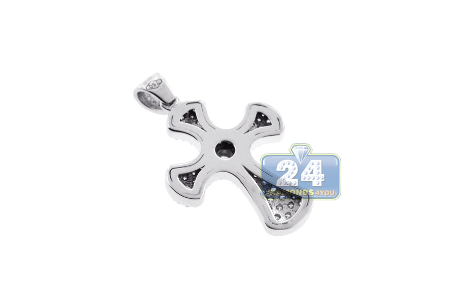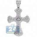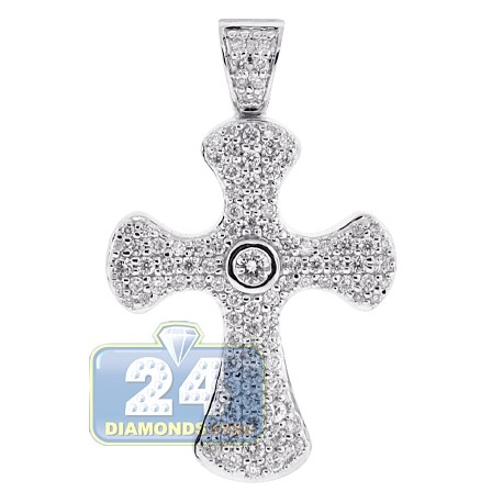 18K White Gold 1.15 ct Diamond Byzantine Cross Mens Pendant