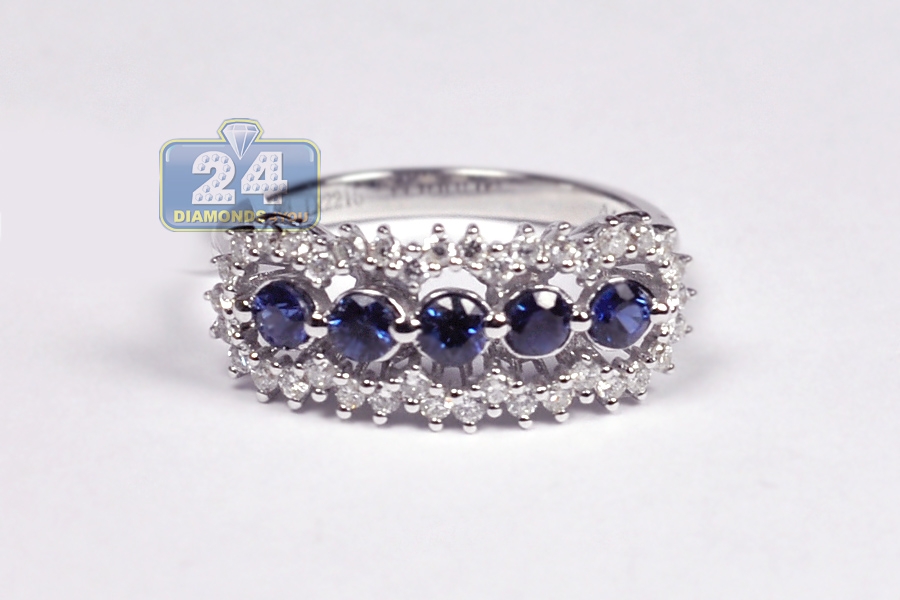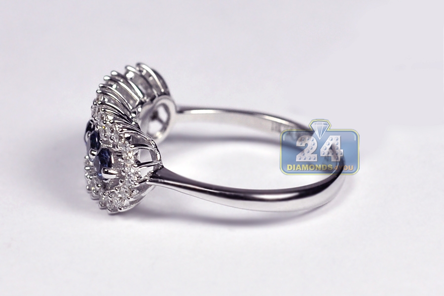 18K White Gold 1.24 ct Diamond Blue Sapphire Womens Ring