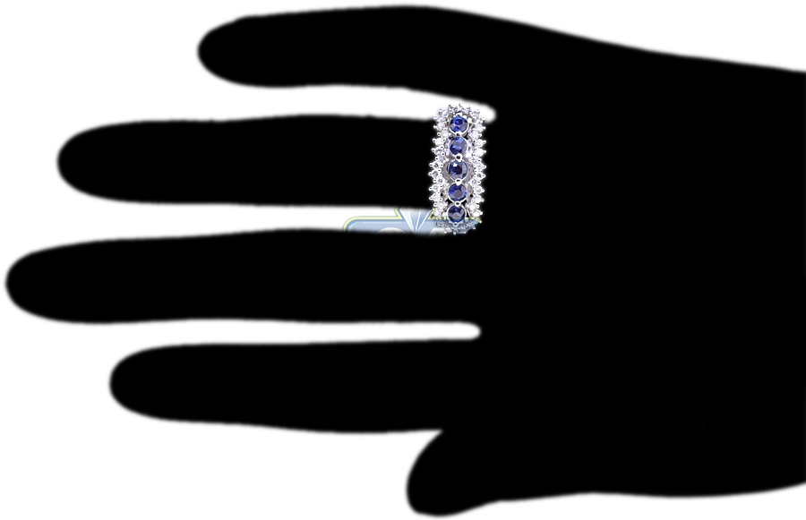 Shimmering with natural royal blue sapphires and genuine white diamonds, our gorgeous ring makes a difference! Featuring a classic flower design with five stones surrounded by smaller ones making the solid look and feel! The ring is professionally handcrafted in cool 18k white gold with highly polished finish, and expertly encrusted with round brilliant-cut diamonds (0.50 ct) and round-cut sapphires (0.74 ct). Perfect for a daily wear with any formal and informal outfit!
