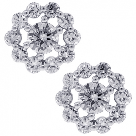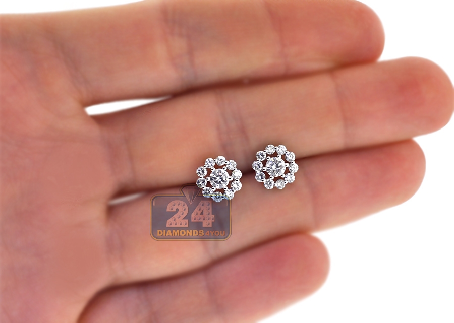 Be prepared for wealth of compliments, wearing this magnificent diamond flower stud earrings! Crafted in lustrous 18k white gold, they are shimmering with 1.25 carat of icy white round brilliant-cut genuine diamonds. The pair measures 9 mm in width, and secured with user-friendly push backs. These women's studs will look spectacular for any occasion!