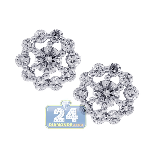 18K White Gold 1.25 ct Diamond Womens Flower Stud Earrings