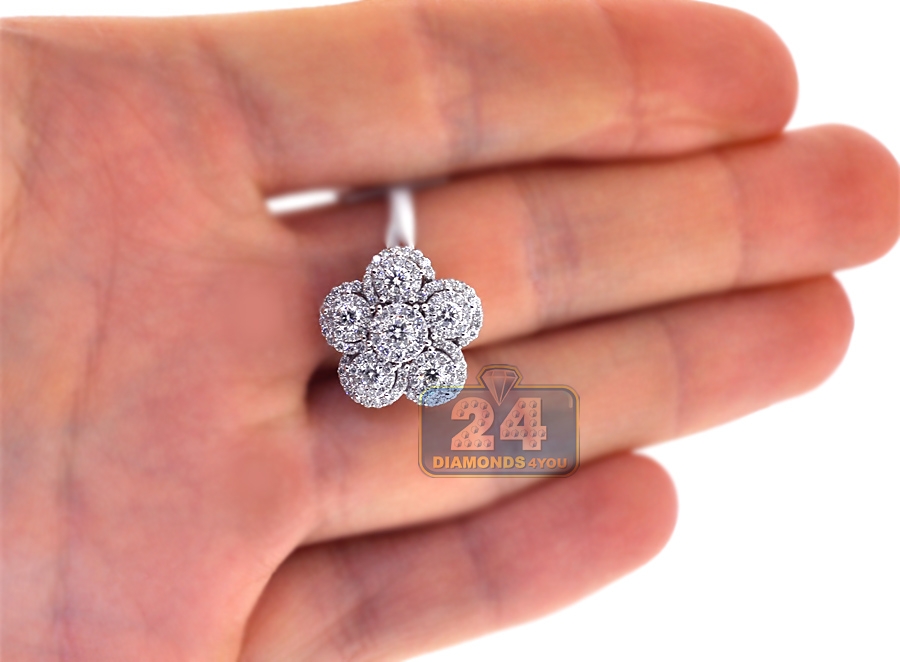 18K White Gold 1.33 ct Diamond Cluster Womens Flower Pendant