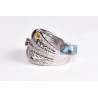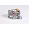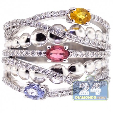 This fancy bands glistens with many colors: from silver, white, blue to yellow, orange to other beautiful shadows! This diamond gemstone ring is professionally handmade of lustrous 18k white gold, highly polished, and handset with icy white round brilliant-cut diamonds (0.67 ct), and oval-cut gemstones of different colors (0.75 ct). What a perfect match for any summer outfit! The detailed certificate/appraisal included.