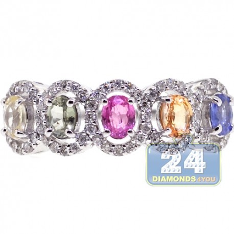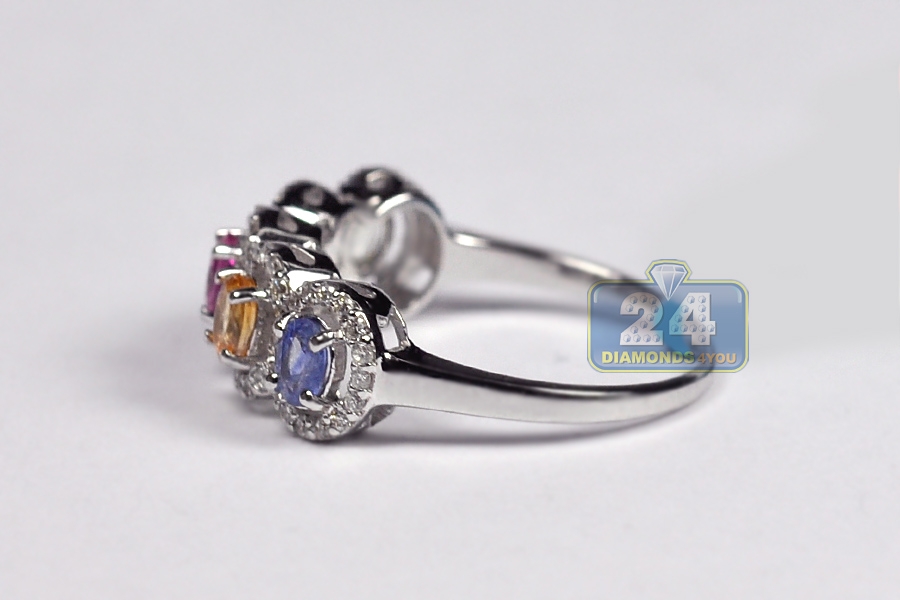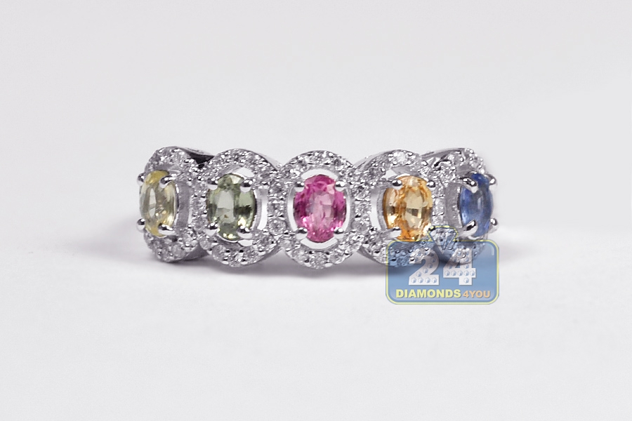 18K White Gold 1.46 ct Diamond Rainbow Sapphire Womens Ring
