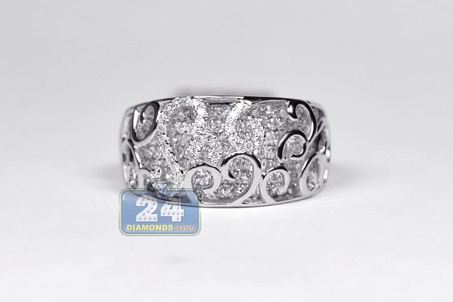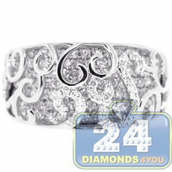 18K White Gold 1.47 ct Diamond Filigree Swirls Womens Ring