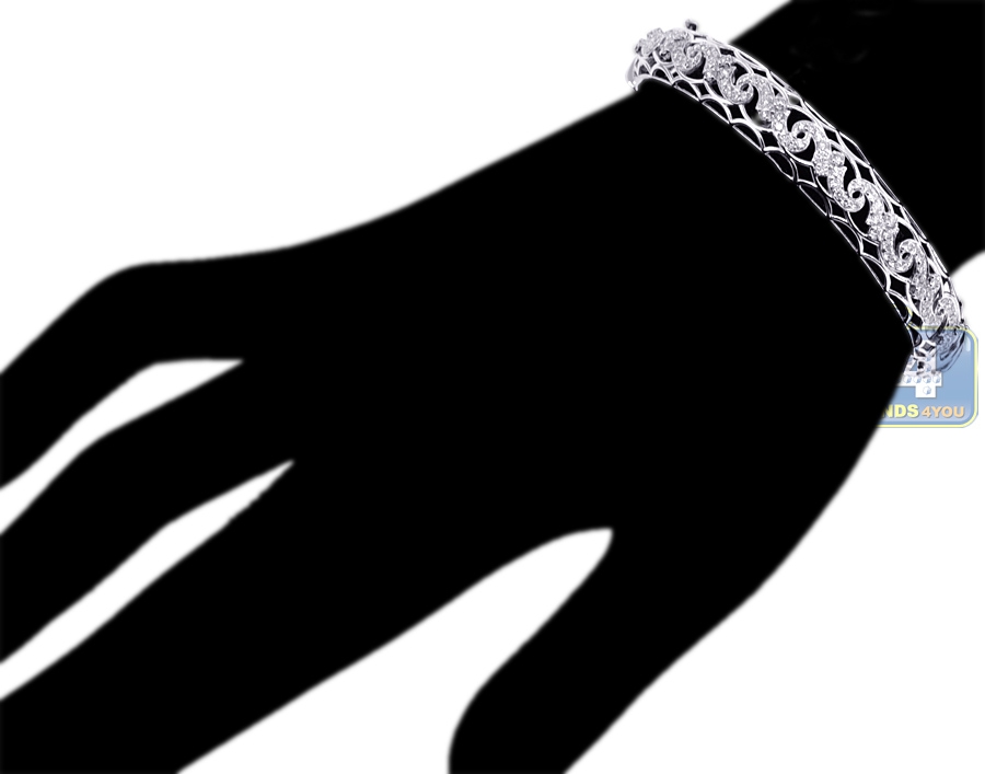 18K White Gold 1.47 ct Diamond Womens Filigree Bangle Bracelet