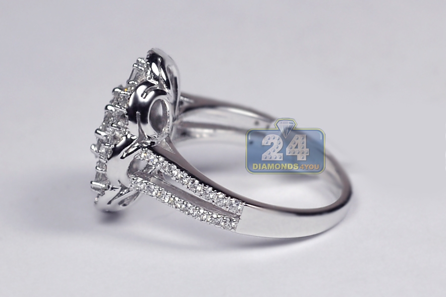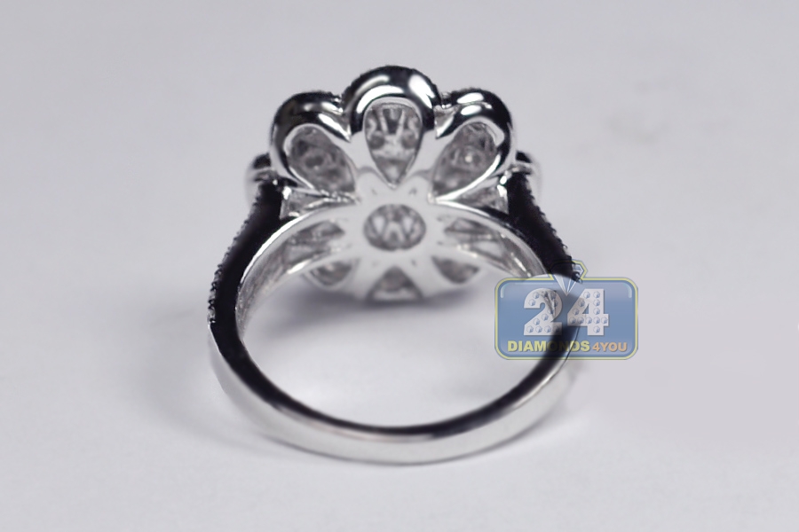 18K White Gold 1.50 ct Diamond Flower Womens Ring