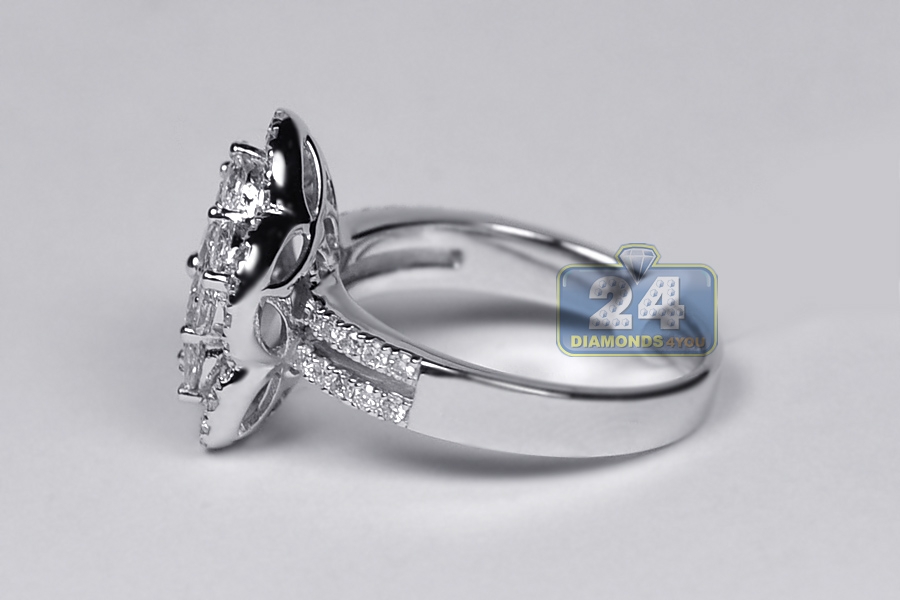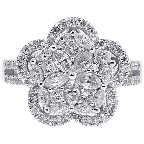 18K White Gold 1.51 ct Diamond Womens Flower Ring