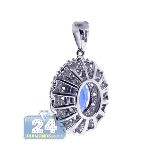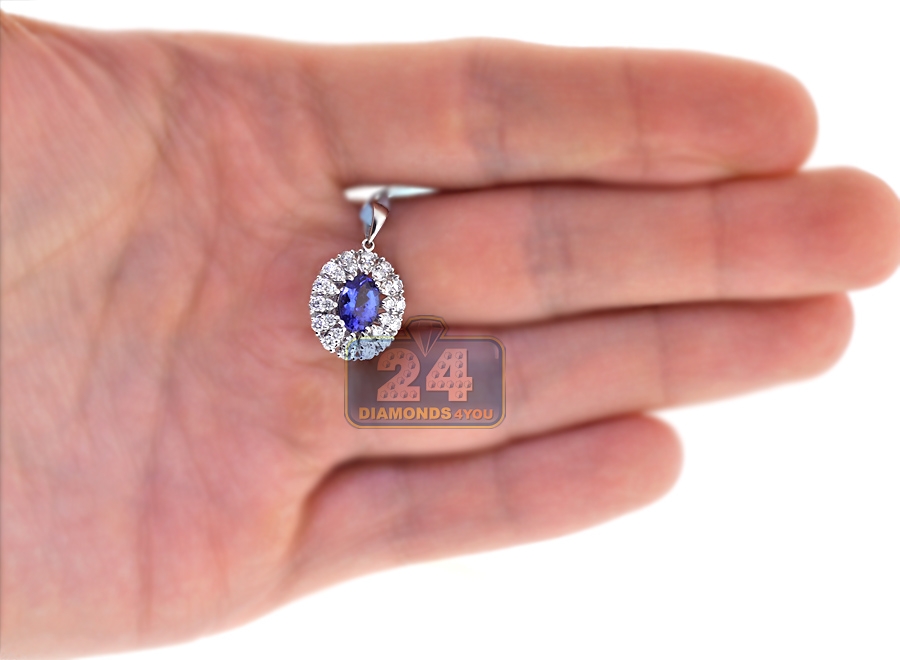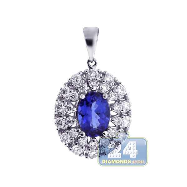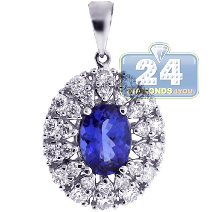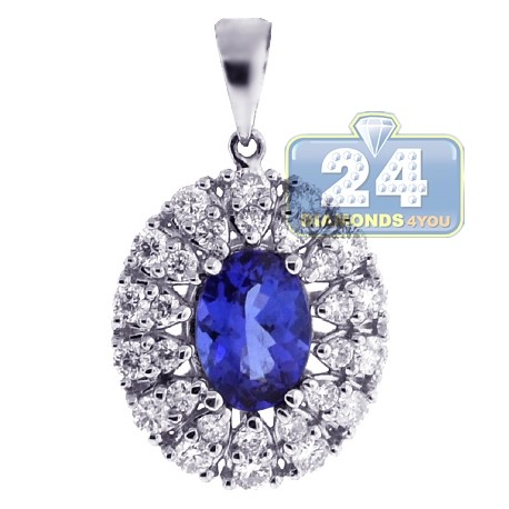18K White Gold 1.55 ct Tanzanite Diamond Womens Halo Pendant