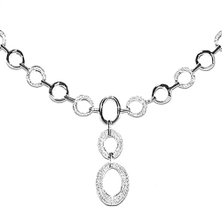 With its elegance, timeless styling and shine, this diamond Y shape necklace is a lovely piece of jewelry and an extraordinary gift! It's artfully crafted in luxurious 18k white gold with rhodium-covered polished finish. The round halo links are accented with icy white round brilliant-cut natural diamonds totaling 1.57 carat (SI1-SI2 clarity, G-H color). Our women's diamond necklace features 17 inches in length around the neck, 35 mm in length of the dangling part and 7 mm in width of links. Add a romantic touch to your dress with the diamond drop necklace!