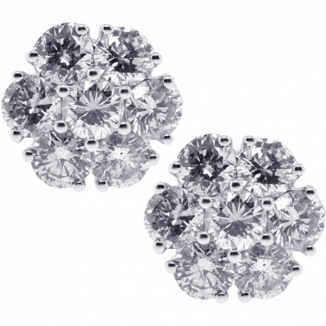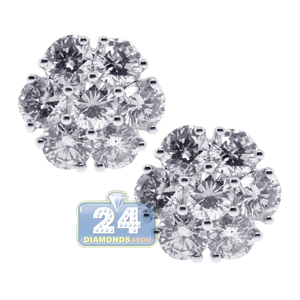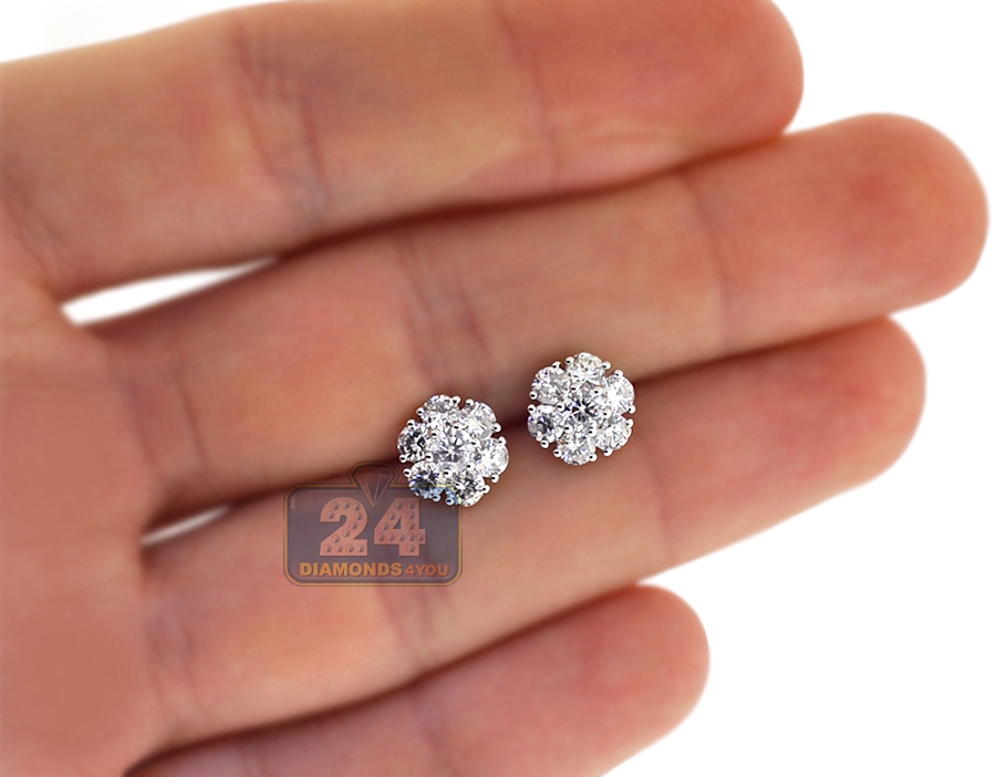 18K White Gold 1.63 ct Diamond Flower Womens Stud Earrings 8 mm
