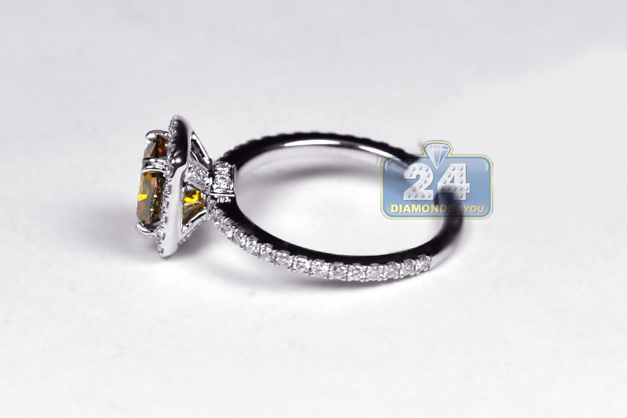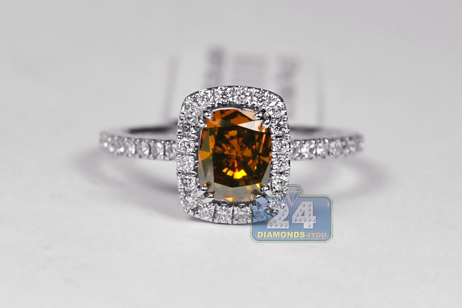 18K White Gold 1.67 ct Cushion Brown Diamond Engagement Ring