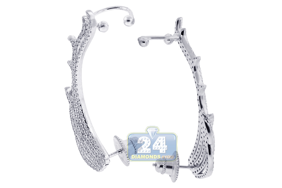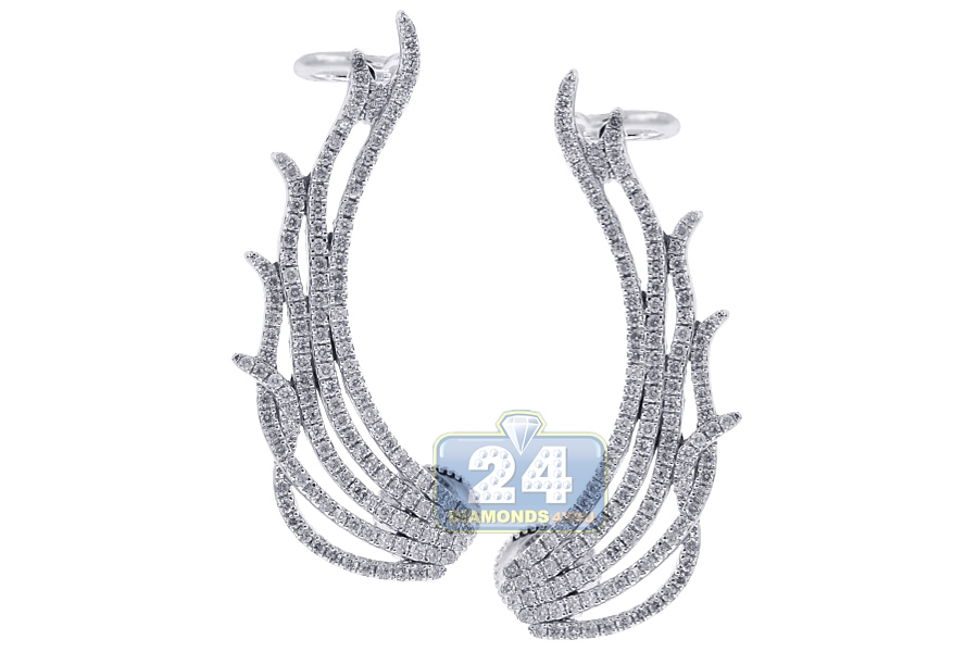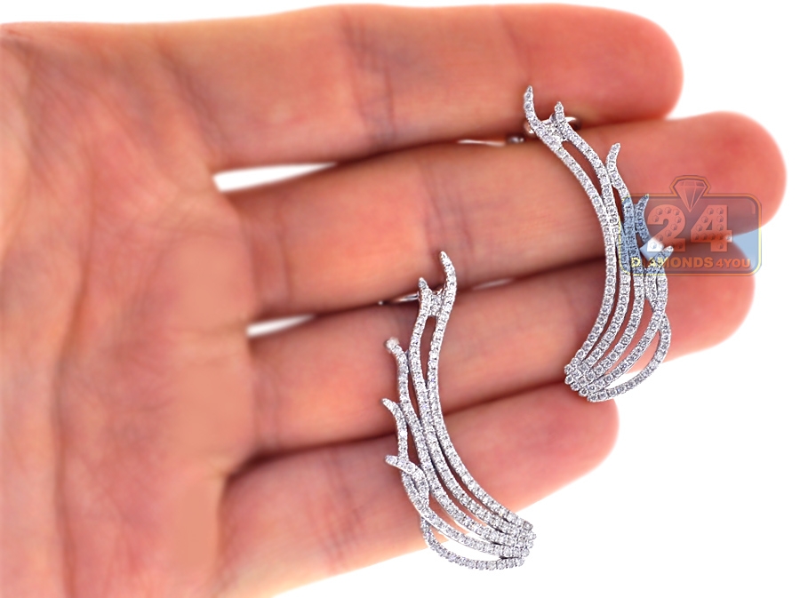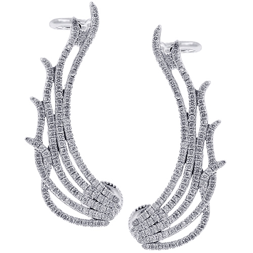 18K White Gold 1.67 ct Diamond Wing Womens Ear Crawlers
