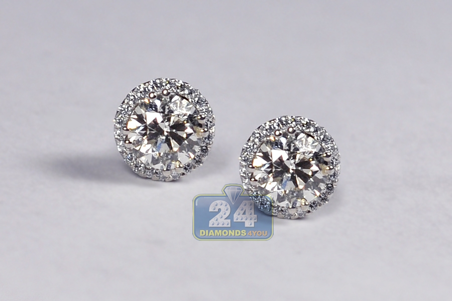 18K White Gold 1.73 ct Diamond Halo Push Back Stud Earrings