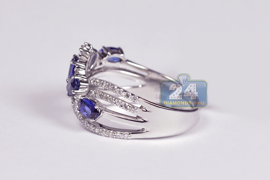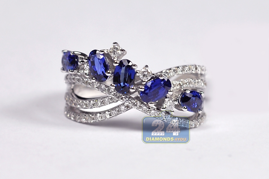 18K White Gold 1.96 ct Diamond Blue Sapphire Womens Infinity Ring