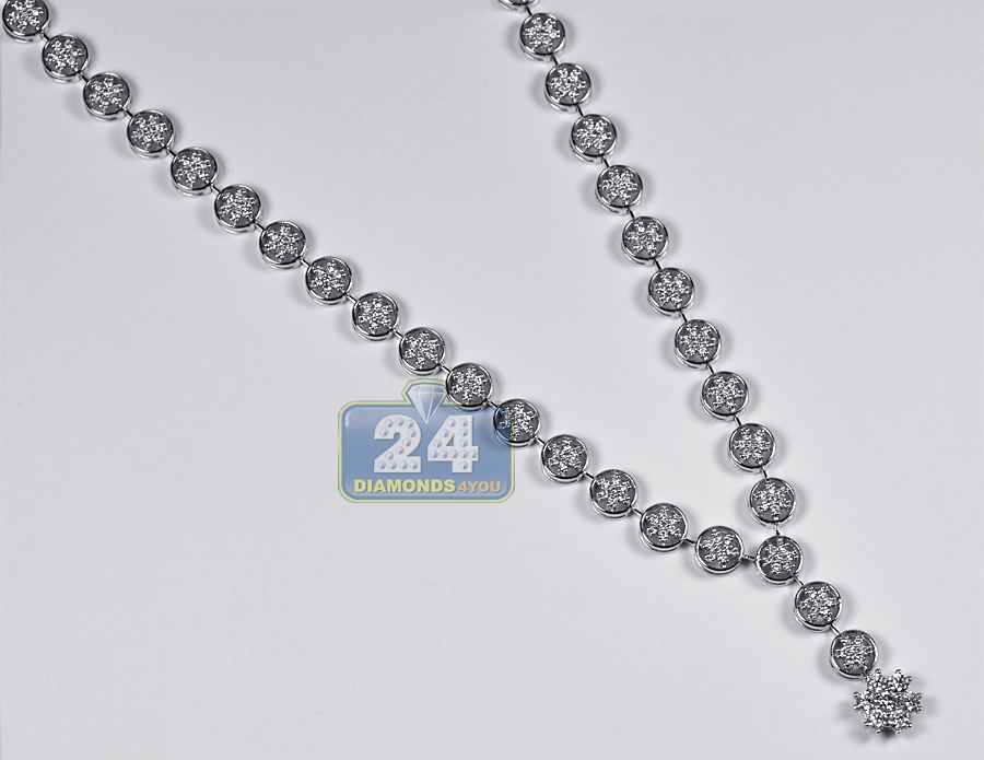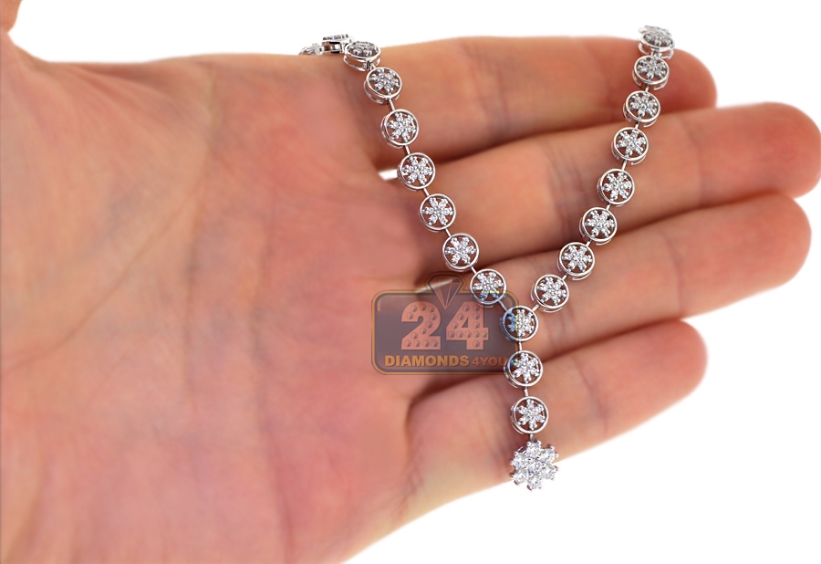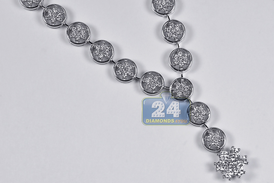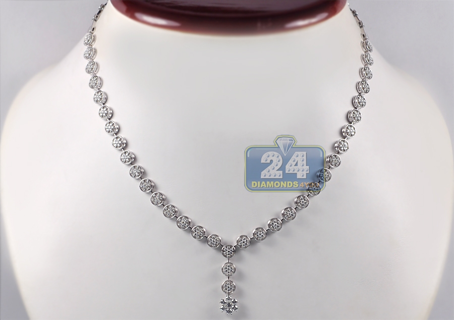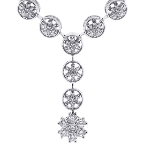 18K White Gold 1.97 ct Diamond Flower Y Shape Necklace 16 Inches
