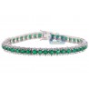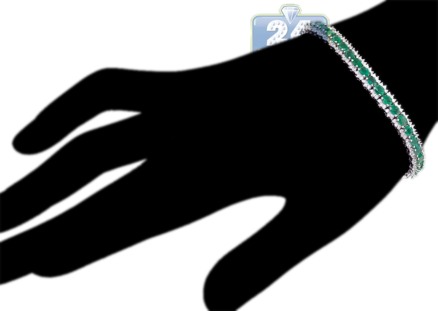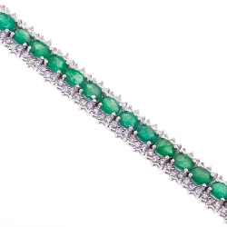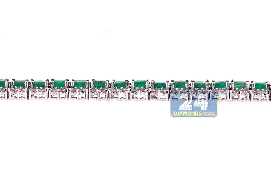 With this adorable emerald and diamond tennis bracelet you will feel like a royalty! It is handmade of lustrous 18k white gold, and professionally encrusted with 7.60 carats of genuine oval-cut emeralds and 2.93 carats of icy white round brilliant-cut diamonds. Our women's tennis bracelet measures 7 inches in length and 6.5 mm in width. You will be thrilled with glamorous presence of this gemstone wrist bracelet!