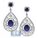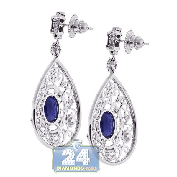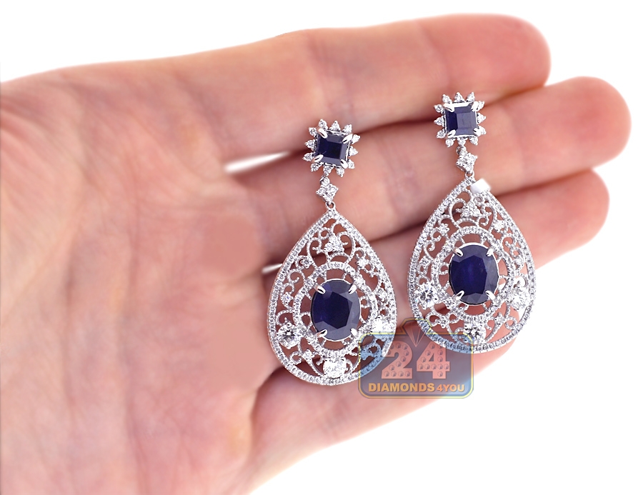 18K White Gold 10.65 ct Blue Sapphire Diamond Dangle Earrings