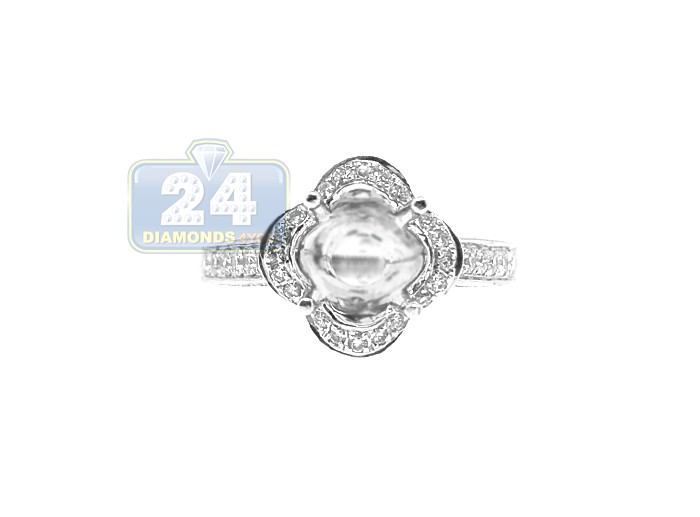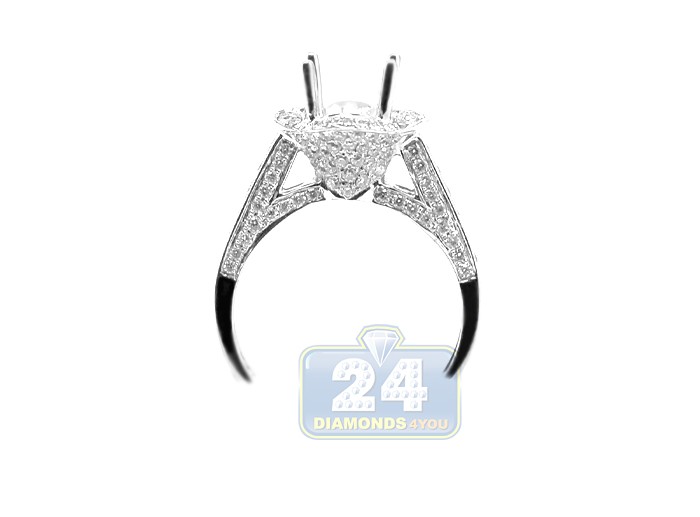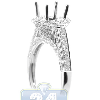 Make your own unique engagement ring with this antique style semi mount! It is expertly handcrafted in lustrous 18k white gold with shiny polish. The magnificent crown is studded with genuine white round cut diamonds and fits round or square center stone of your choice. The gleaming shank sparkles with eye clean and sparkling diamonds totaling 1.06 carat. Your proposal will be definitely one of a kind with this breathtaking piece!