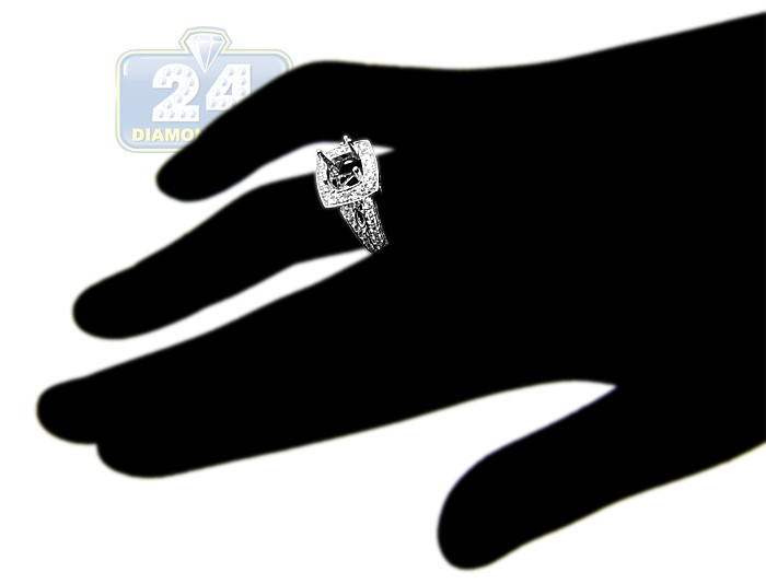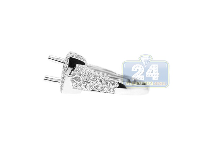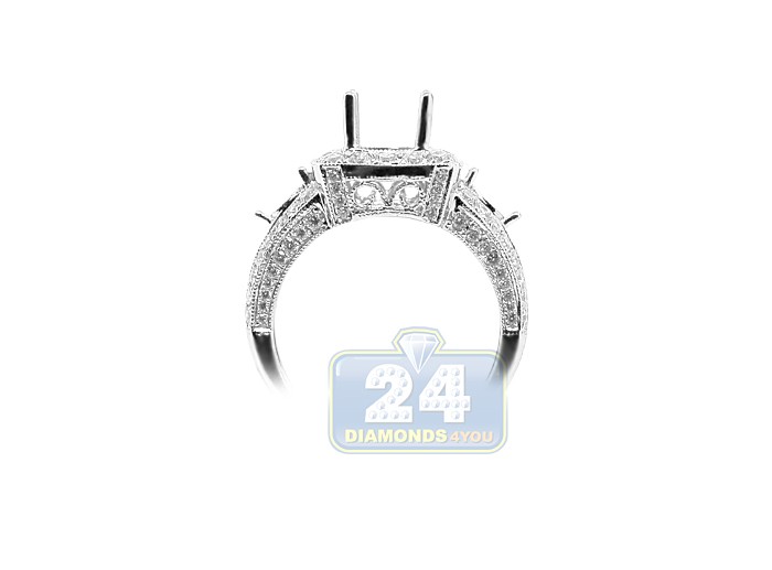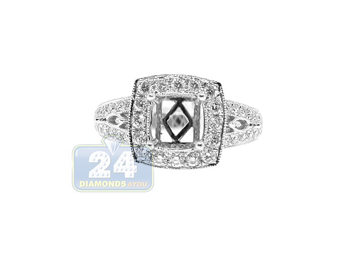 Capture her heart with this truly unique 18k white gold engagement setting. It features an antique design and is set with a fiery 1.07 ct total weight round cut diamonds. This unforgettable setting holds square or round cut center stone of your choice.