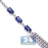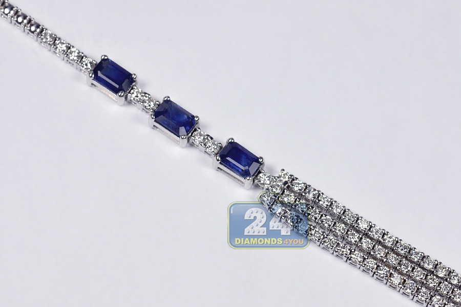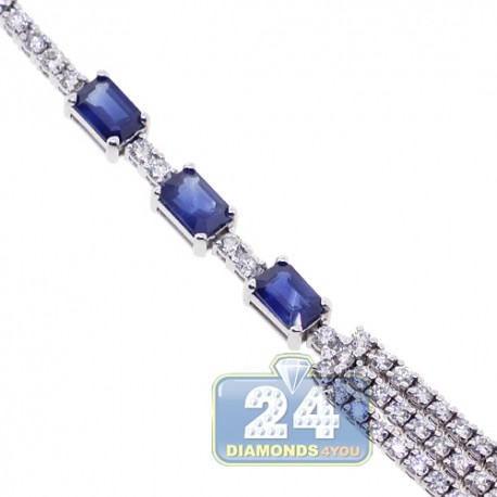 Choose our splendid diamond gemstone tennis necklace for a dressy look! It is skillfully handcrafted in luxurious 18k white gold, and features highly polished rhodium covered finish. The layered tennis necklace is studded with icy white round brilliant-cut diamonds of 7.65 carats, and radiant-shaped genuine blue sapphires of 4.05 carats. This women's gemstone necklace measures 16.5 inches in length, and has width of 2.5, 5, 6.5 mm; also secured by a very safe box clasp. Your neckline deserves this ultra-sparkling blue sapphire diamond necklace!