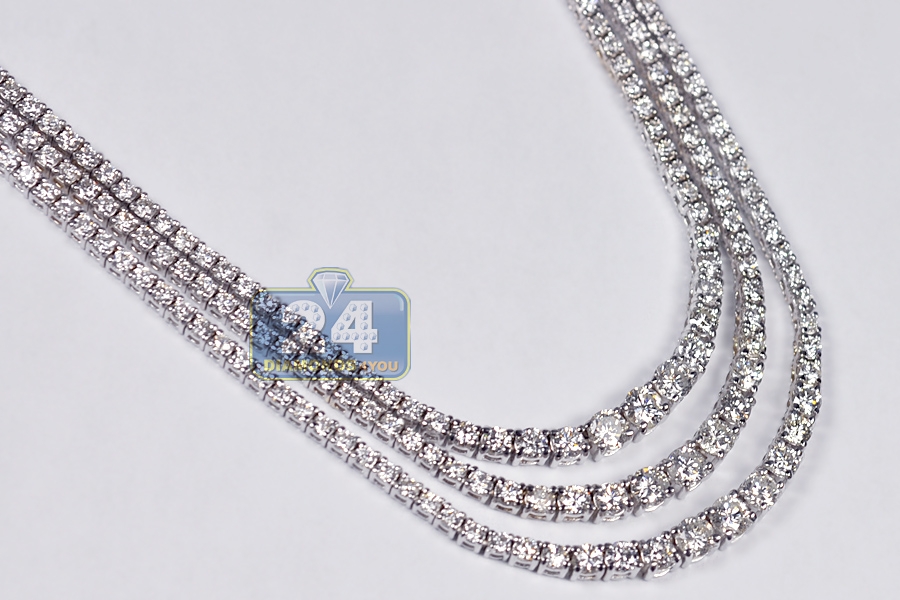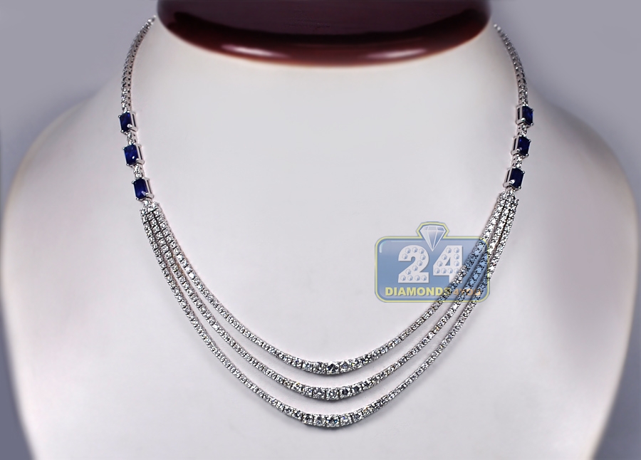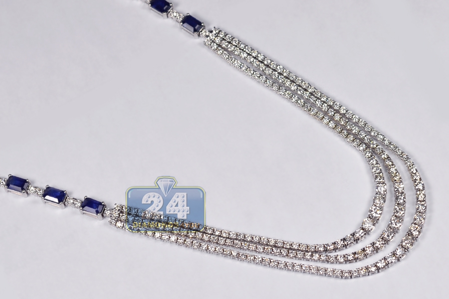 18K White Gold 11.70 ct Diamond Sapphire Layered Tennis Necklace
