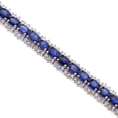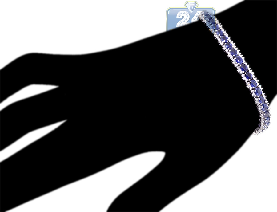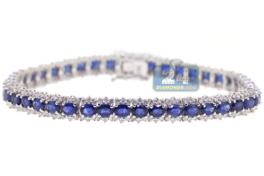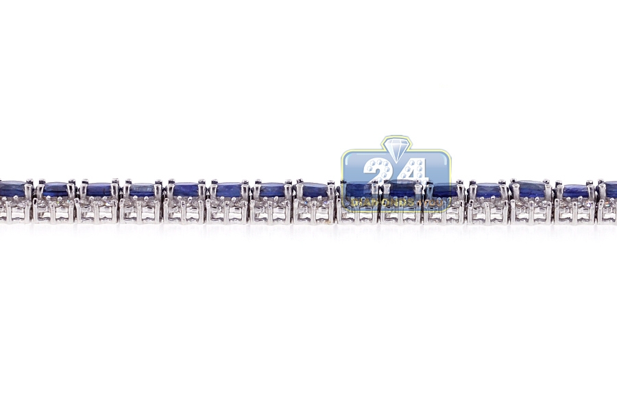With this adorable blue sapphire and diamond tennis bracelet you will feel like a royalty! It is handmade of lustrous 18k white gold, and professionally encrusted with 10.19 carats of genuine oval-cut sapphires and 2.91 carats of icy white round brilliant-cut diamonds. Our women's gemstone bracelet measures 7 inches in length and 6.5 mm in width. You will be thrilled with glamorous presence of this gemstone wrist bracelet!