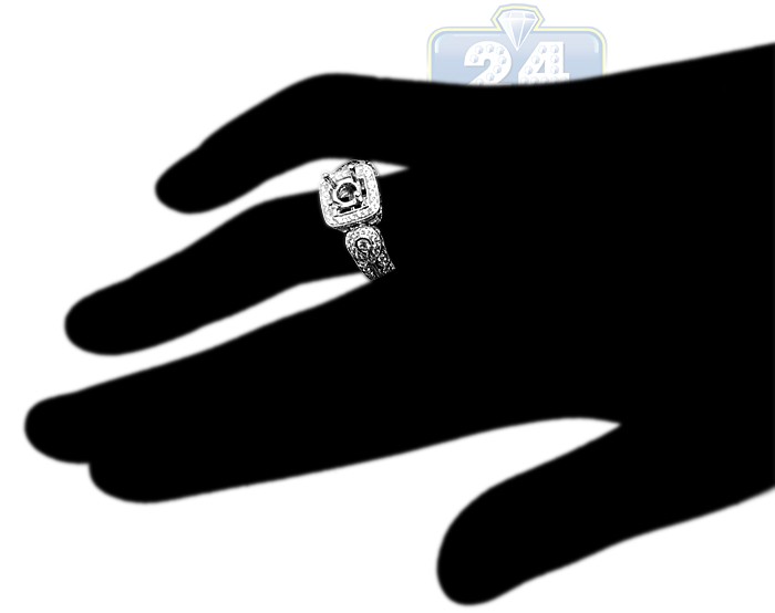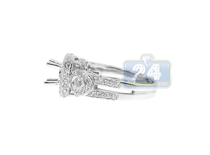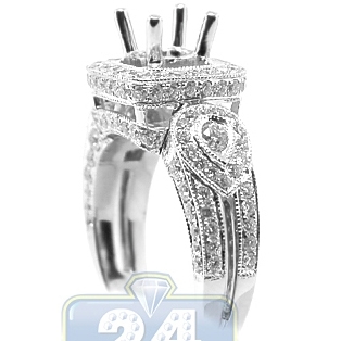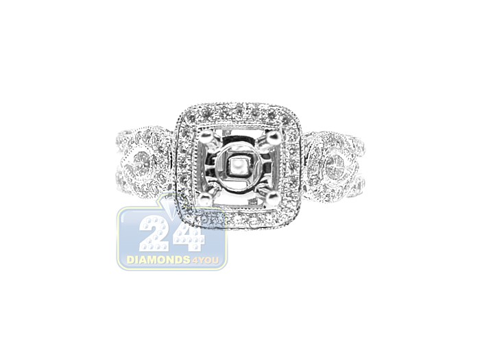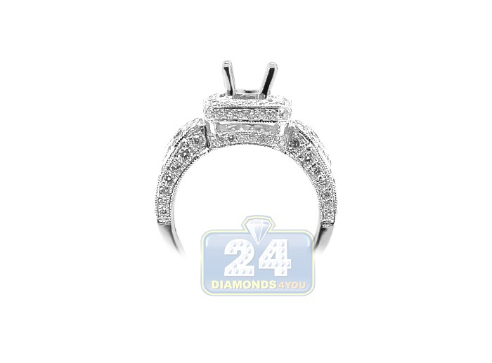 Let this luxurious diamond engagement semi mount be the symbol of your undying love! Perfectly polished 18k white gold setting is artfully designed to create an antique effect. It is professionally handset with glittering 1.30 carat round cut diamonds of the natural origin. These are totally sparkling and eye clean brilliants, handpicked with F-G color and VS1-VS2 clarity. The center crown is designed for the square or round shaped stone of your choice.