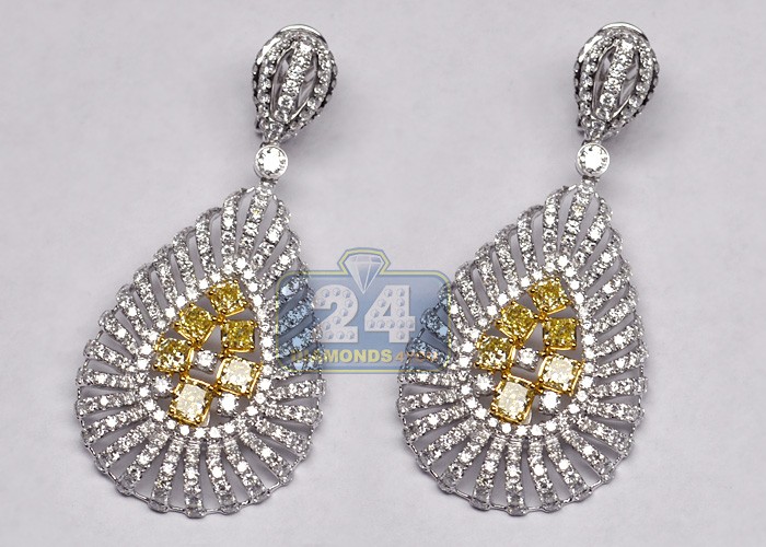 18K White Gold 13.66 ct Yellow Diamond Womens Dangle Earrings