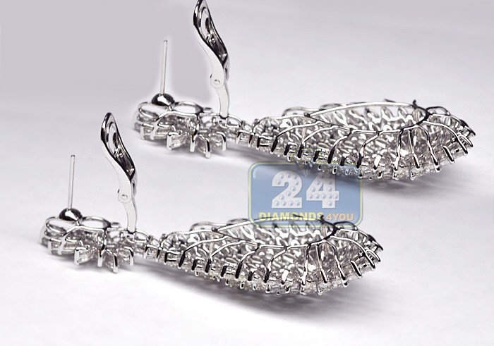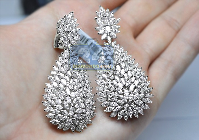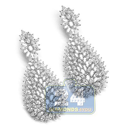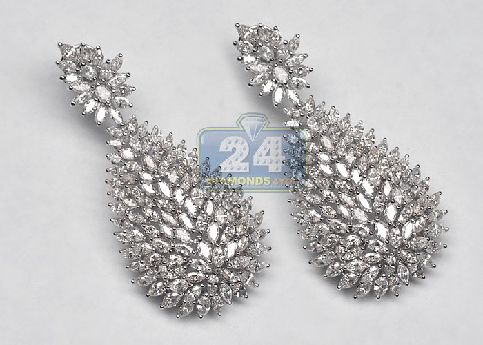 18K White Gold 15.80 ct Marquise Diamond Womens Dangle Earrings