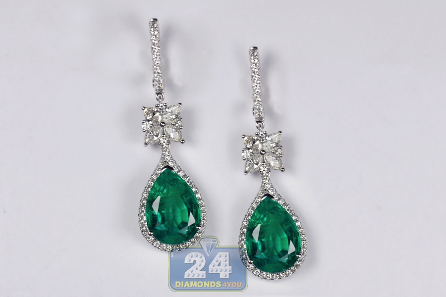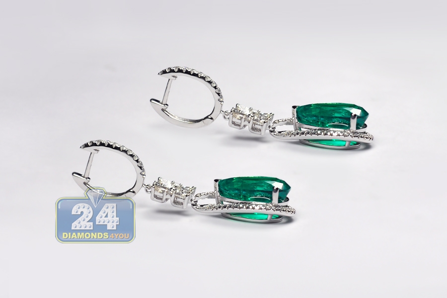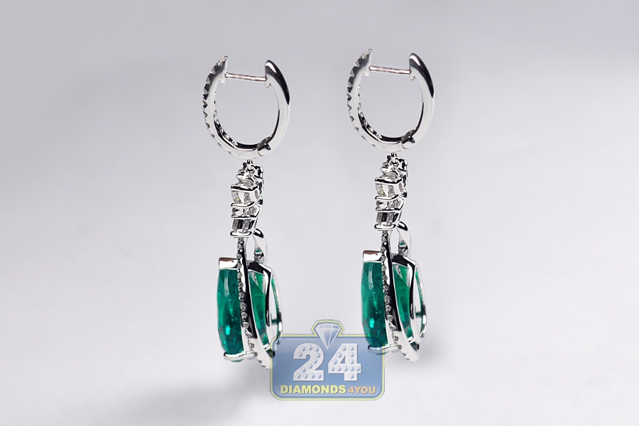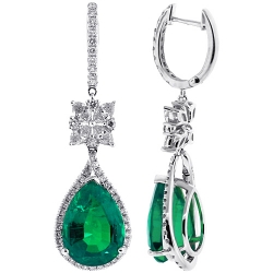 18K White Gold 16.25 ct Emerald Diamond Dangle Earrings