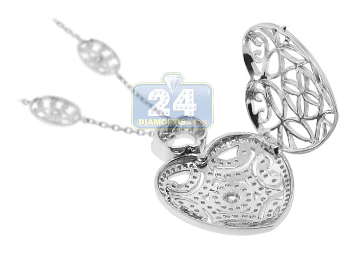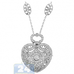 18K White Gold 1.65 ct Diamond Locket Heart Pendant Necklace