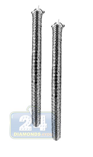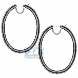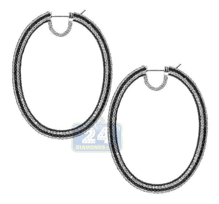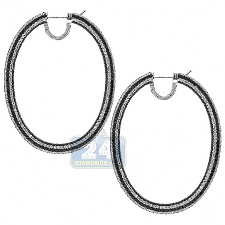 Adorn yourself with a jewelry absolutely stunning as you are! Our women's oval hoop earrings are made of cool 18k white gold, and highly polished for shimmering look. Maximizing shine comes from impressive combination of glittering 17.35 ct total weight round brilliant-cut diamonds of white and black colors. Add a dose of chick effect to your look with these diamond oval hoop earrings!