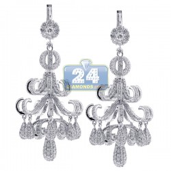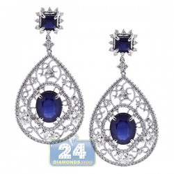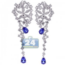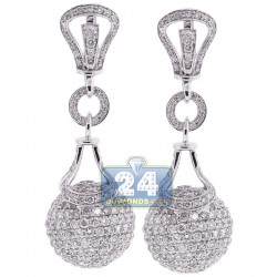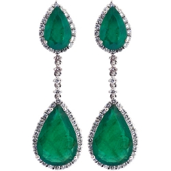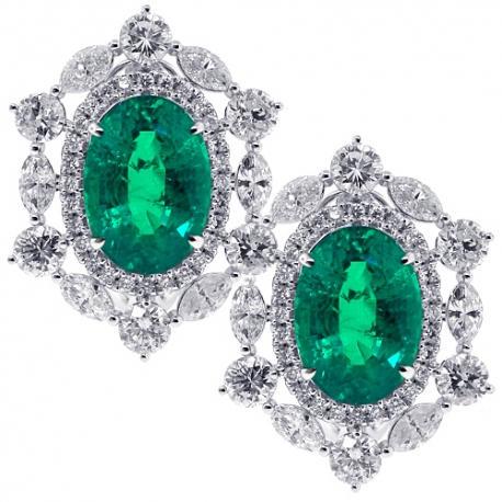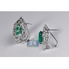 18K White Gold 17.46 ct Diamond Emerald Womens Flower Earrings
