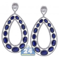 Our breathtaking pair of diamond gemstones earrings exudes a truly luxurious aura! Designed in a floral shape, the settings are ably created from cool 18k white gold with a high-polished glossy finish. The centers are encrusted with two matching synthetic (flux-grown) oval-cut emeralds, both weighting 11.63 carats. They're surrounded by white round and marquise shaped diamonds of 5.83 carats. The pair measures 28 mm in height and 21 mm in width; and closed by comfortable safe omega backs. Bring excitement to your look with these women's huggie earrings!