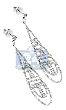 18K White Gold 1.80 ct Diamond Womens Openwork Dangle Earrings