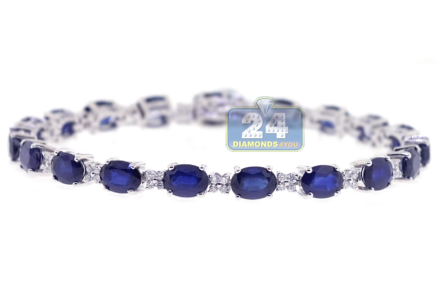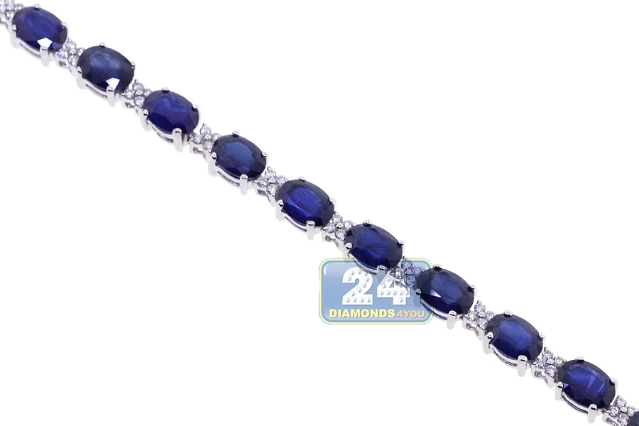 18K White Gold 19.63 ct Blue Sapphire Diamond Womens Bracelet