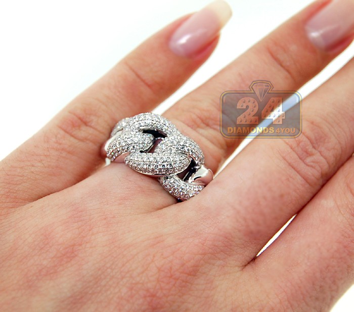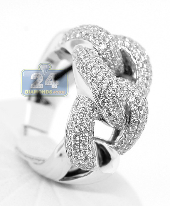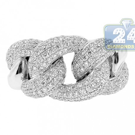 18K White Gold 1.90 ct Diamond Cuban Link Womens Ring