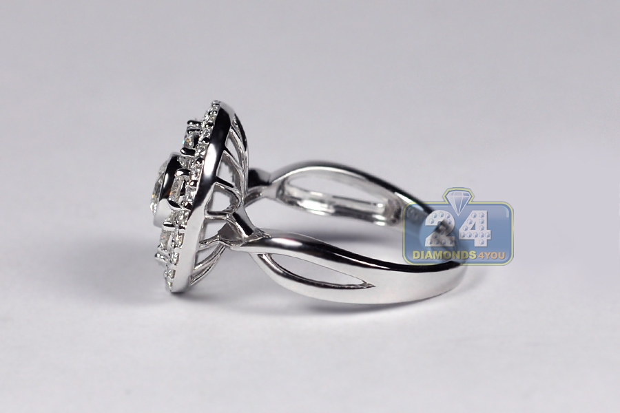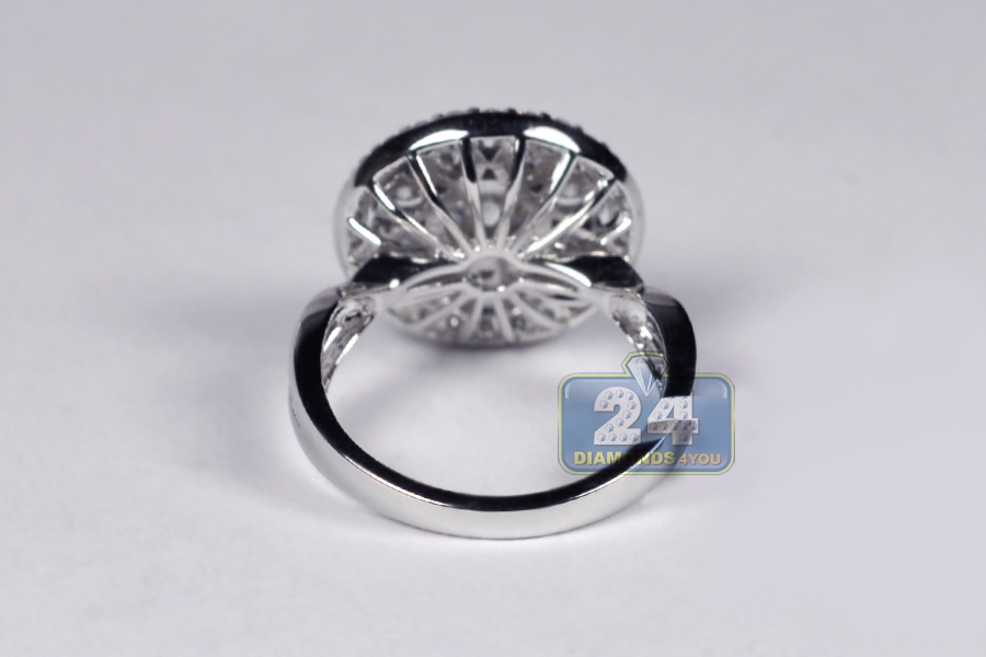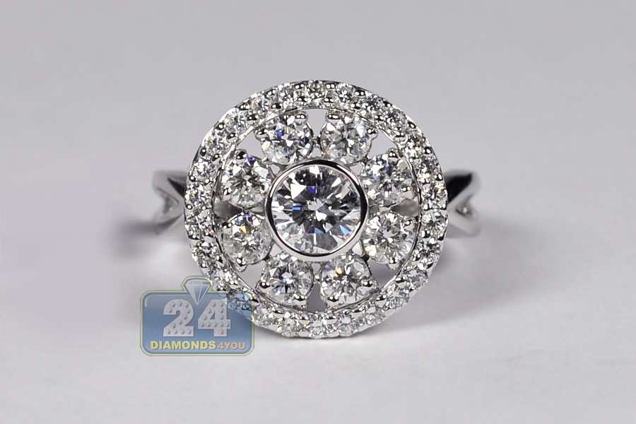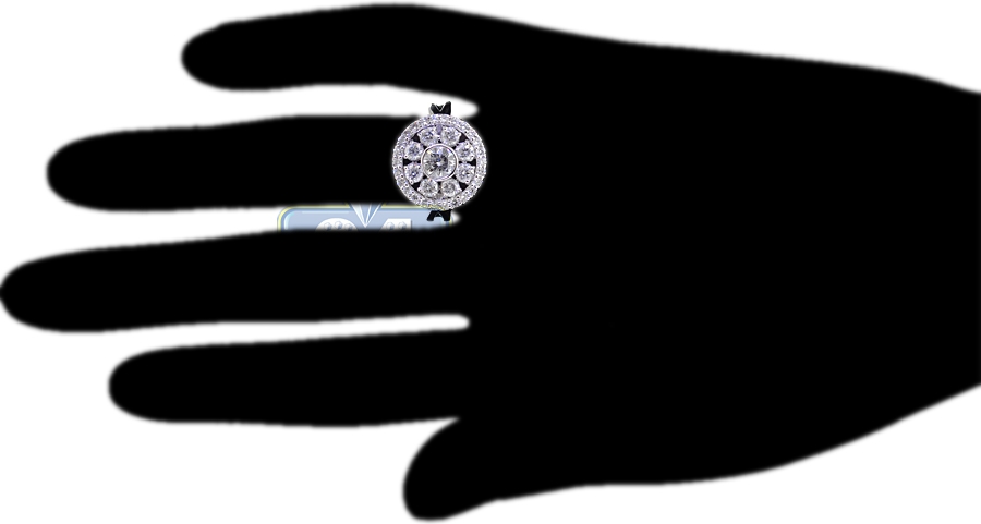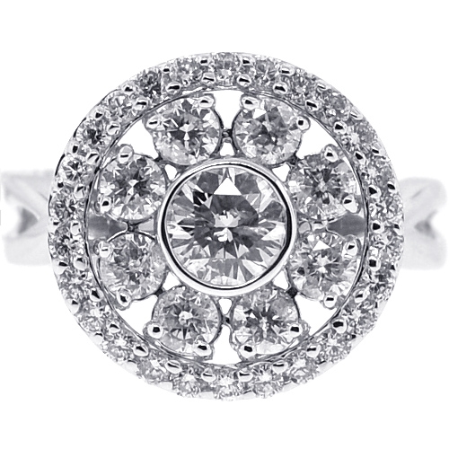 18K White Gold 2.01 ct Diamond Cluster Womens Round Ring