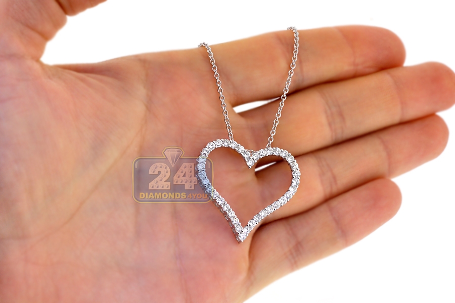 18K White Gold 2.06 ct Diamond Heart Pendant Necklace 18 inch