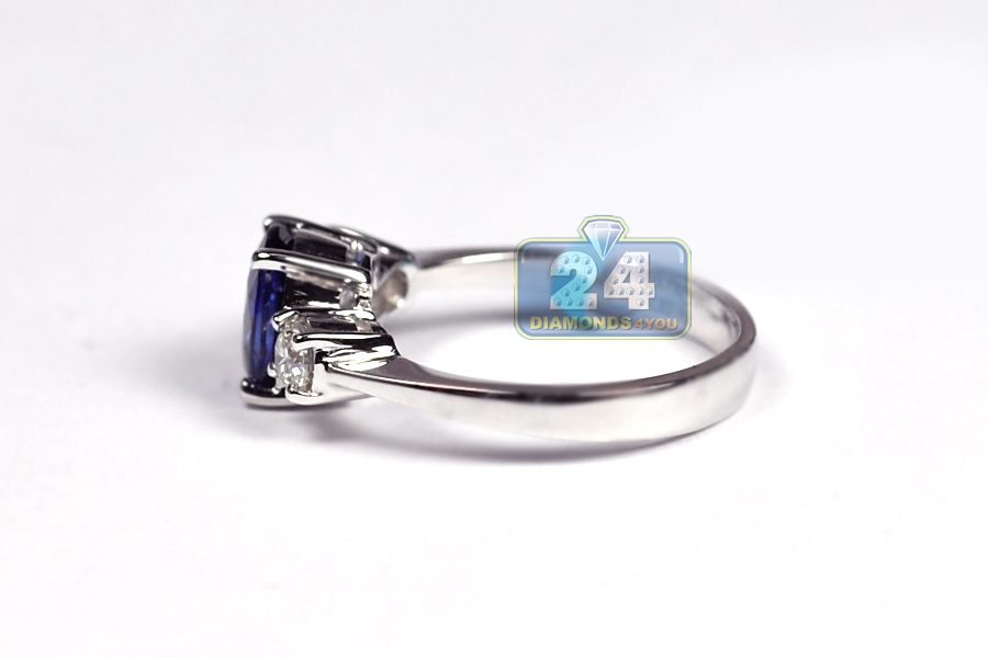 18K White Gold 2.09 ct Diamond Sapphire Womens Engagement Ring