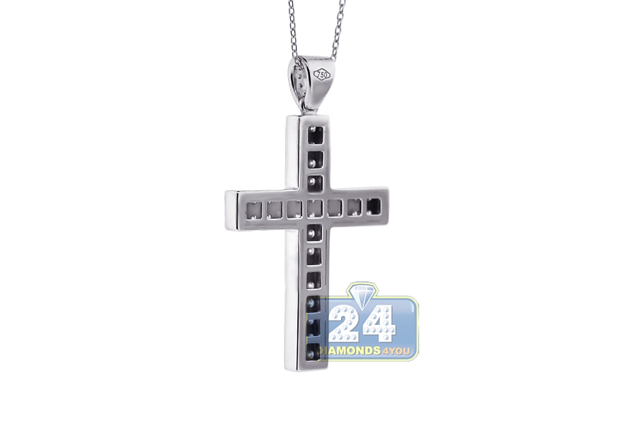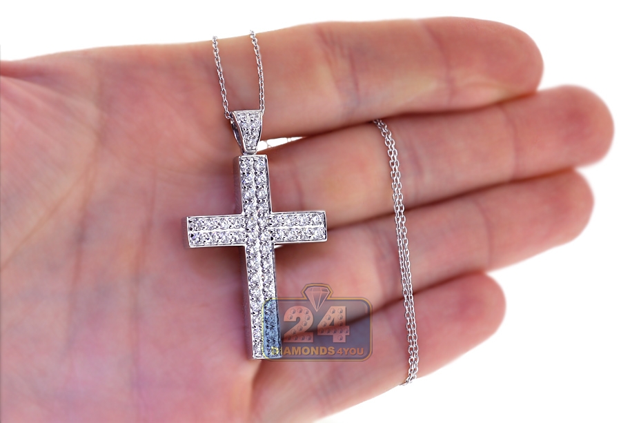 18K White Gold 2.10 ct Diamond Classic Cross Pendant Necklace