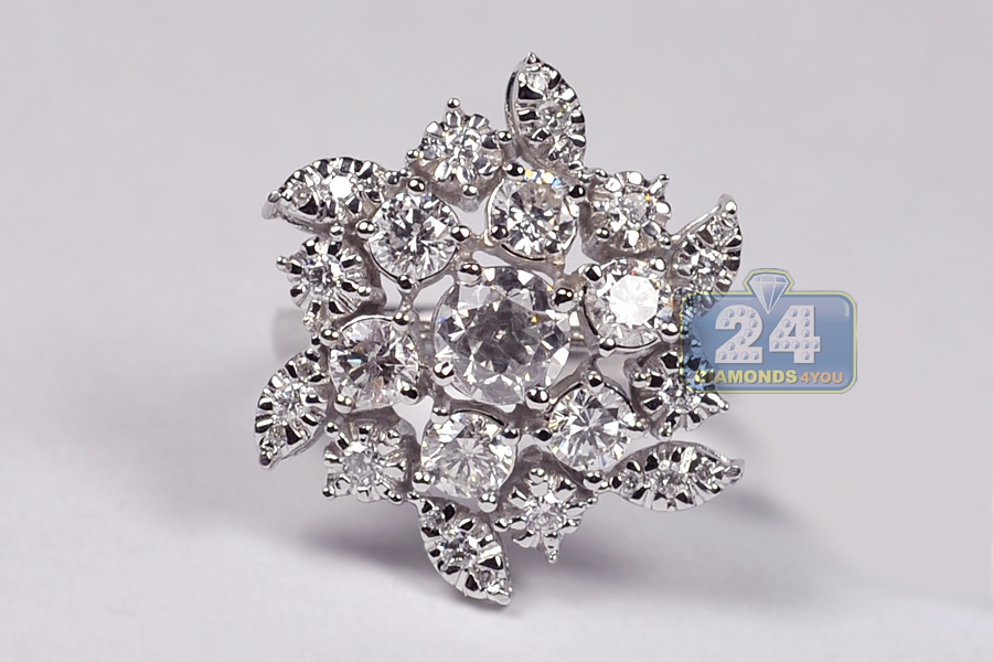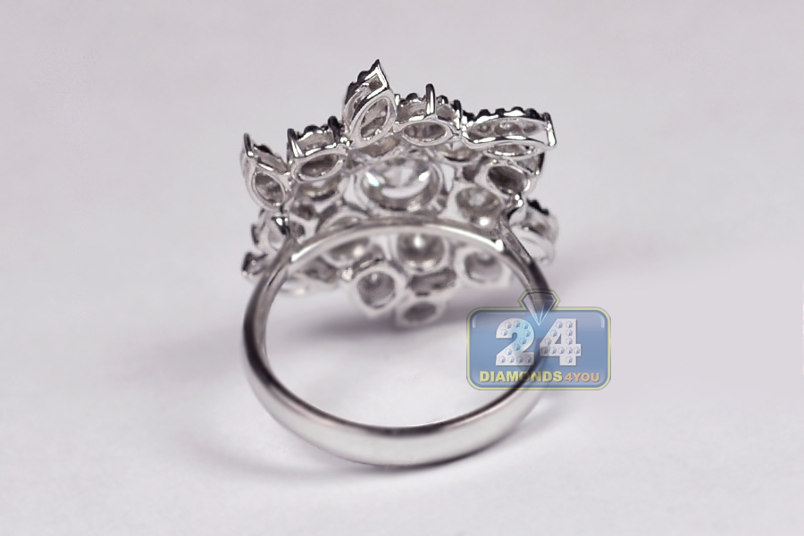 18K White Gold 2.15 ct Diamond Womens Flower Ring