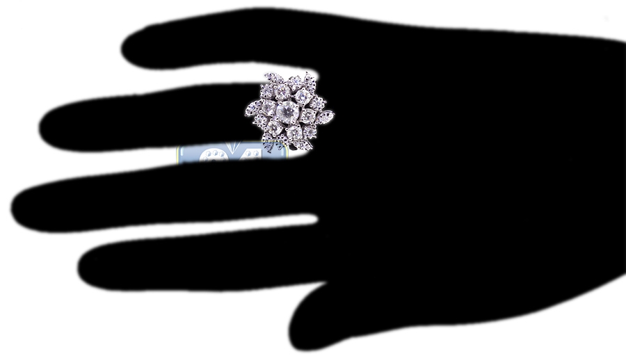 When the special occasion calls for a unique accessory, you will enjoy to own our breathtaking diamond flower ring! It is beautifully created from cool 18k white gold, and encrusted with icy white round brilliant-cut diamonds totaling 2.15 carats. Exceptional in every way!