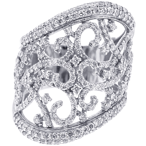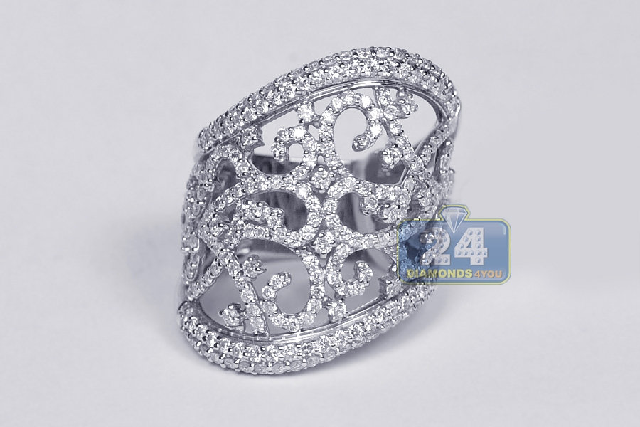 18K White Gold 2.16 ct Diamond Womens Openwork Wide Ring