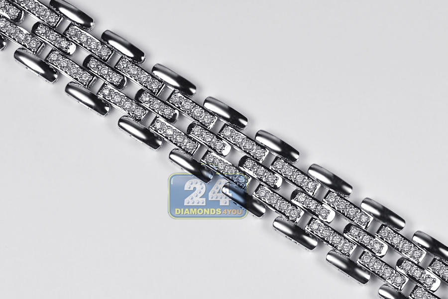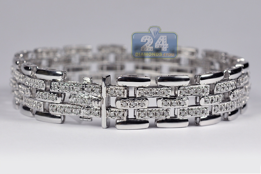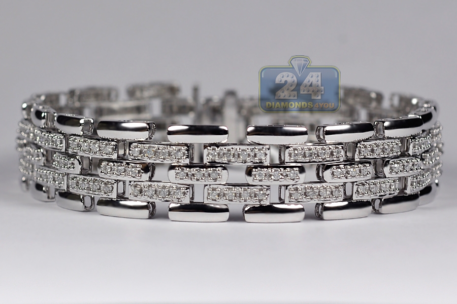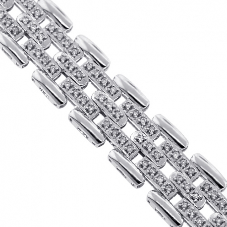 18K White Gold 2.20 ct Diamond Bicycle Link Mens Bracelet