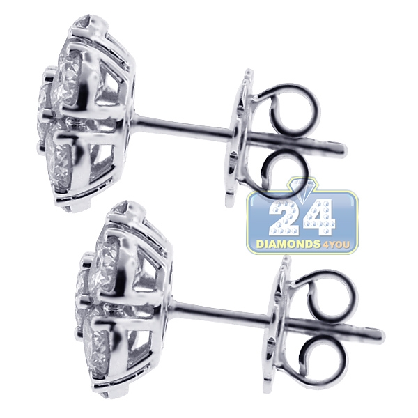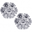 18K White Gold 2.33 ct Diamond Flower Womens Stud Earrings 10 mm