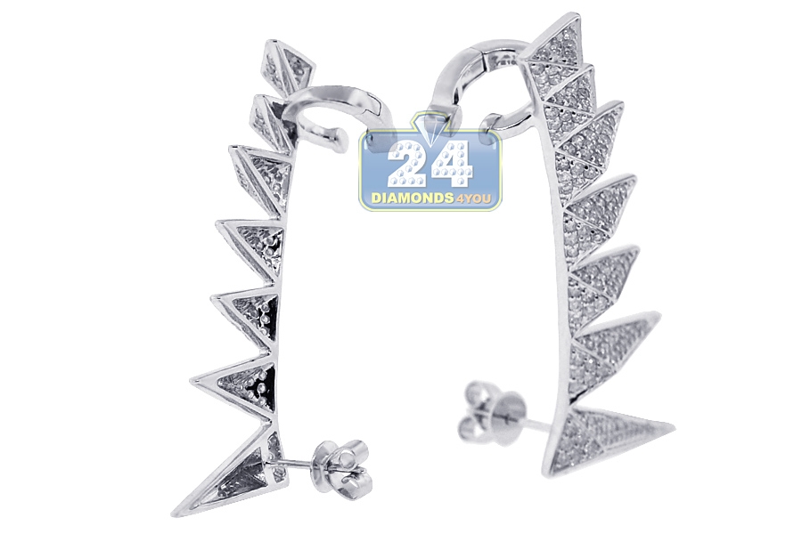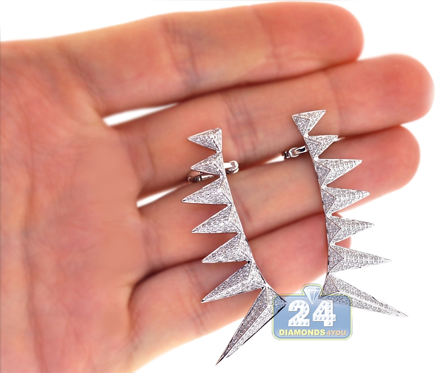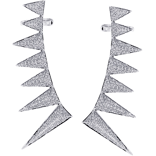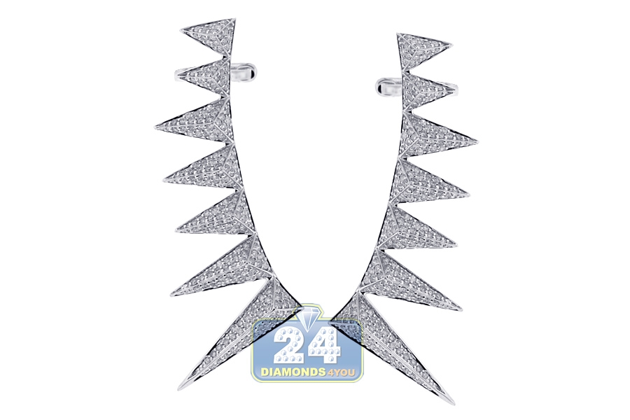 18K White Gold 2.41 ct Diamond Spike Womens Ear Crawlers